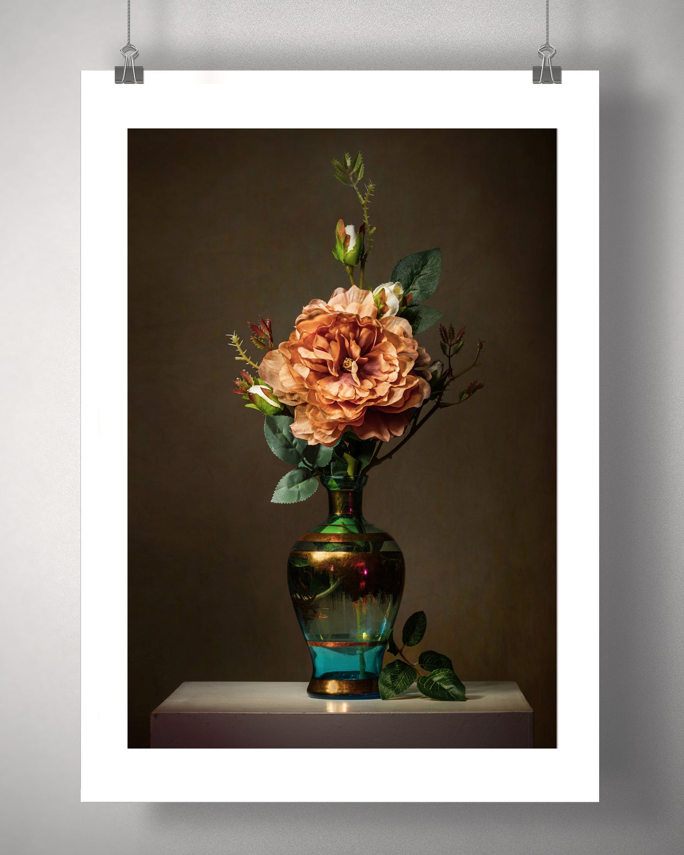 Bring a touch of the extraordinary to your art collection with this one-of-a-kind photograph. It captures the essence of Carl Doghouse’s iconic “uncomfortable” portrait style, featuring a vase of fake flowers titled "PLASTIX FANTASTIX."